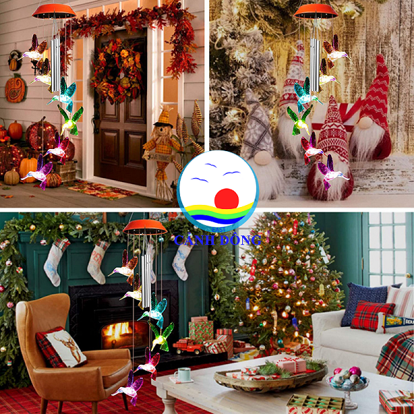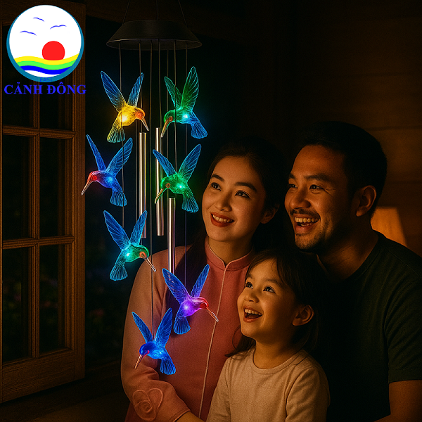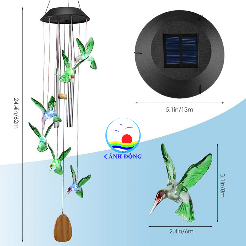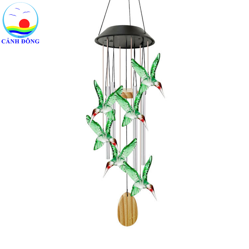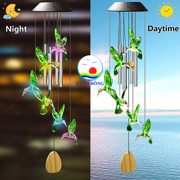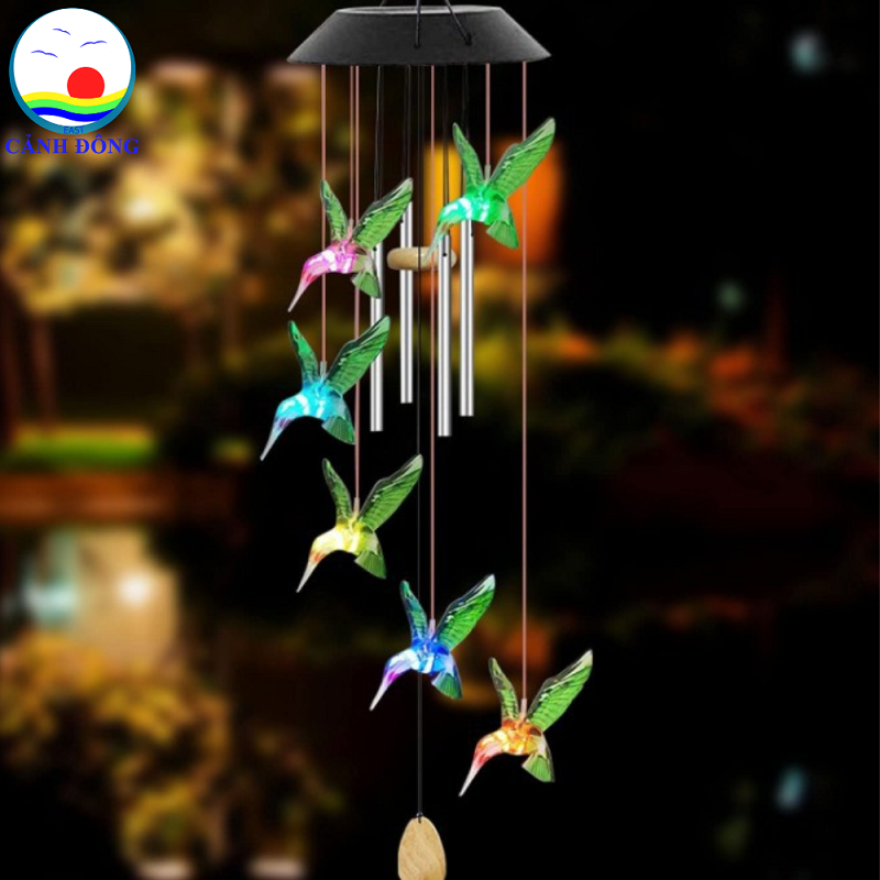 Chuông gió đèn năng lượng mặt trời Cảnh Đông – mẫu chuông gió treo cửa, ban công, sân vườn, phát sáng ban đêm, chim hút mật đổi màu lung linh, khắc chữ theo yêu cầu – quà tặng decor gần gũi thiên nhiên, ý nghĩa cho tổ ấm gia đình.