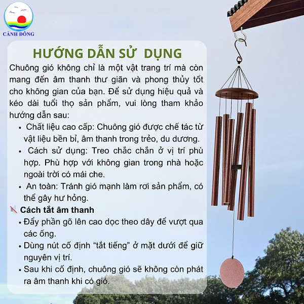 ✔ Âm thanh trầm ấm, sâu lắng: Chuông gió với đường kính ống chuông 3 cm tạo ra những âm thanh du dương, ngân vang, giúp tâm hồn thư thái, giảm căng thẳng, hỗ trợ thiền định và tập yoga.