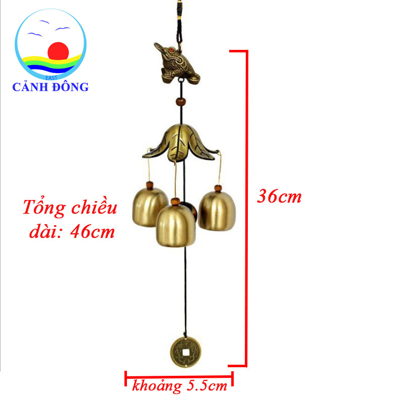 - Chuông gió phong thủy thiềm thừ ba chuông với thiềm thừ được làm từ chất liệu polime tổng hợp cao cấp và 3 chuông được tạo từ kim loại hợp kim