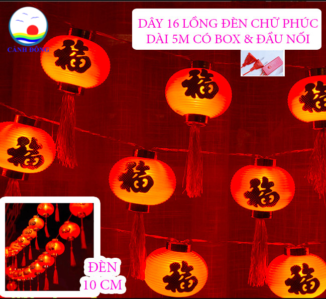 Dây lồng đèn chữ Phúc 16 lồng đèn dài 5m có box điều khiển và đầu nối