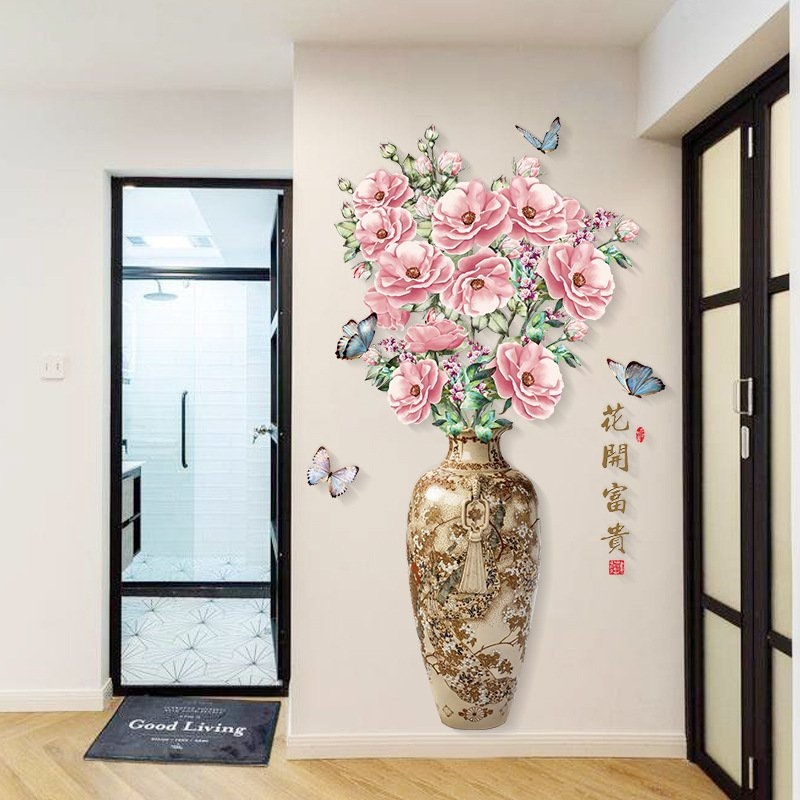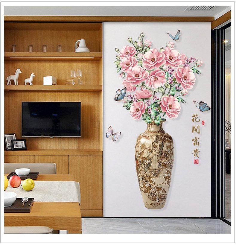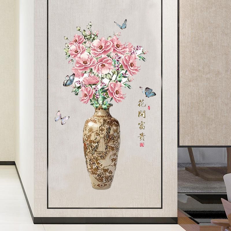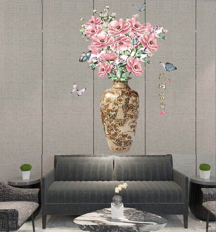 DECAL DÁN TƯỜNG 3D BÌNH HOA HỒNG TRANG TRÍ SANG TRỌNG