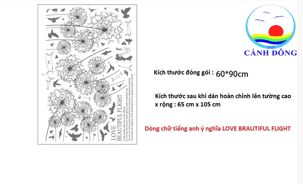 DECAL DÁN TƯỜNG BỒ CÔNG ANH KHUNG CẢNH LÃNG MẠN VÀ ĐẦY THƠ MỘNG