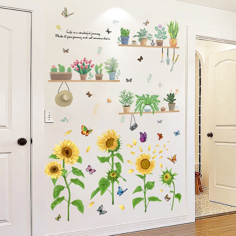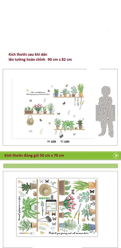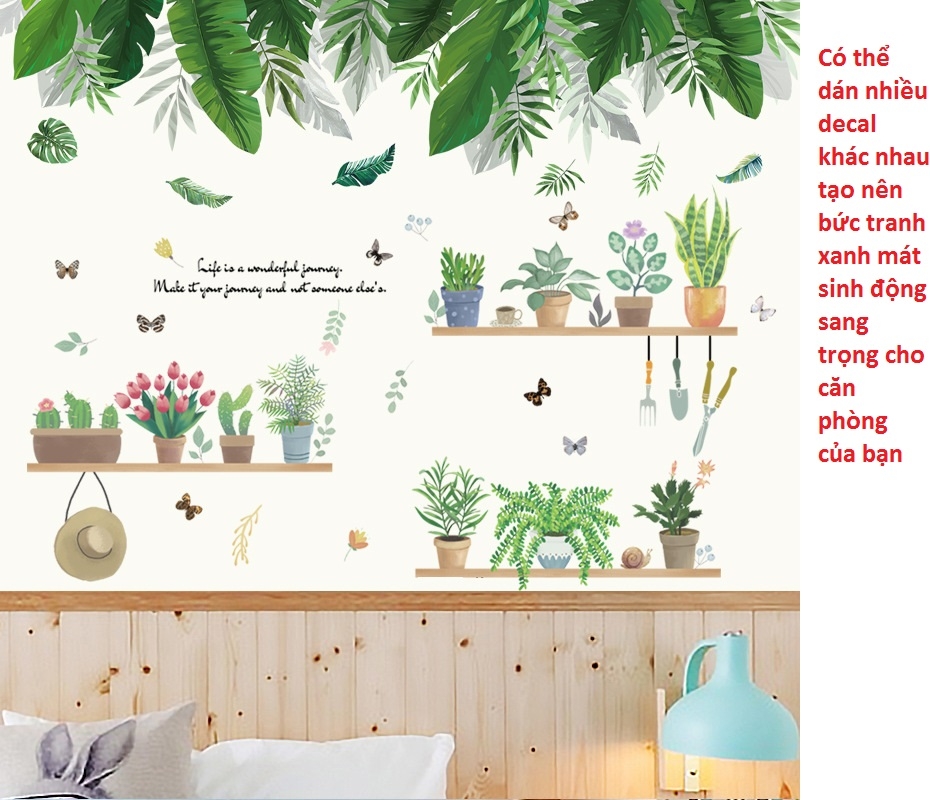 Decal dán tường chậu cây còn đặc biệt truyền tải thông điệp cuộc sống qua bức tranh thiên nhiên ngập tràn hương vị sắc màu và cây lá muôn loài sinh sôi nảy nở bên cạnh.
