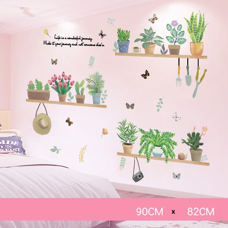 DECAL DÁN TƯỜNG TRANG TRÍ XANH MÁT NHỮNG CHẬU HOA ĐÁNG YÊU