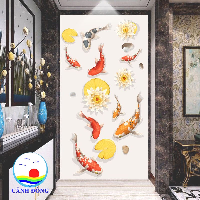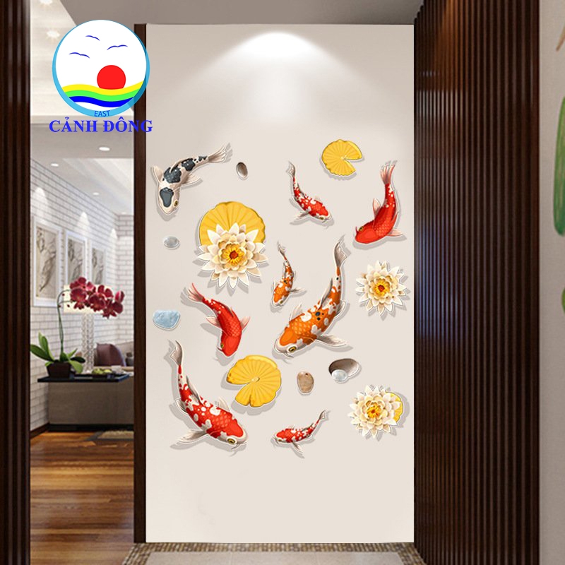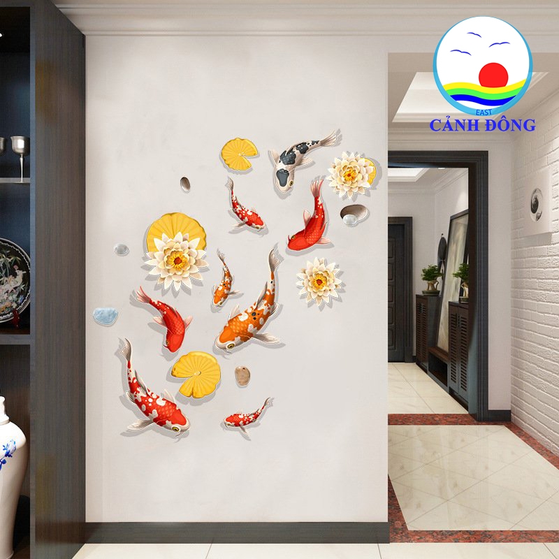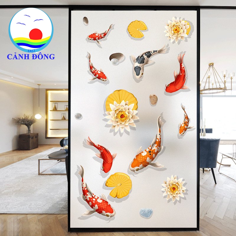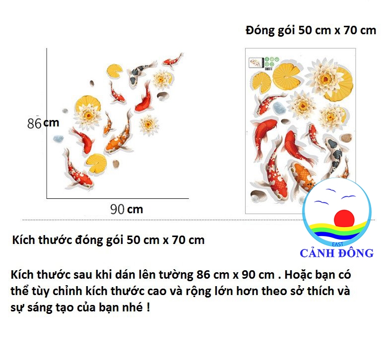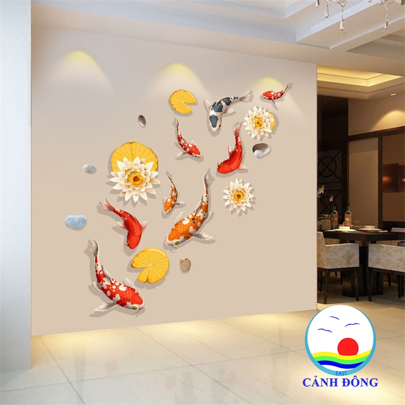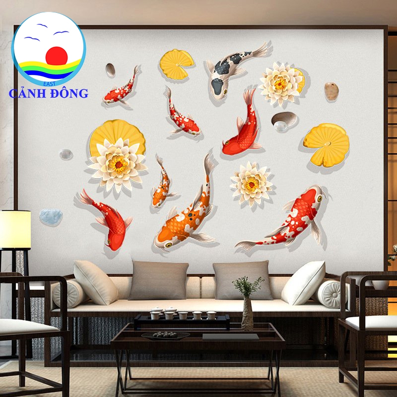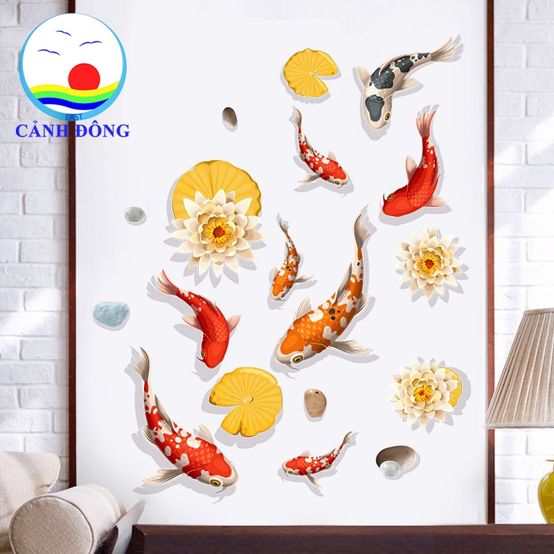 Sản phẩm bao gồm: 1 x Decal dán tường đàn cá koi phong thủy