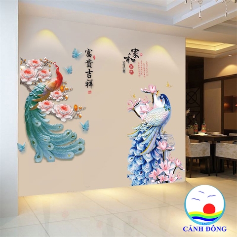 Sản phẩm bao gồm: 1 x Decal dán tường đôi chim công khổng tước sang trọng