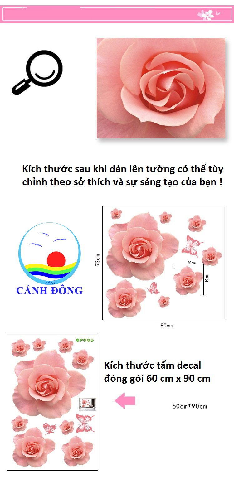 Decal dán tường hoa hồng hiện đại, sang trọng không chỉ làm đẹp ngôi nhà, hài hòa với không gian, mà còn làm thêm sinh động và ấm cúng từ phòng khách, phòng ngủ, phòng tắm hay các không gian khác như là Yoga, Spa, Resort và cửa hàng. Bên cạnh đó, decal dán tường hoa hồng còn đem lại may mắn tài lộc, vận may và hơn hết là giúp gia đình hòa thuận yên vui.