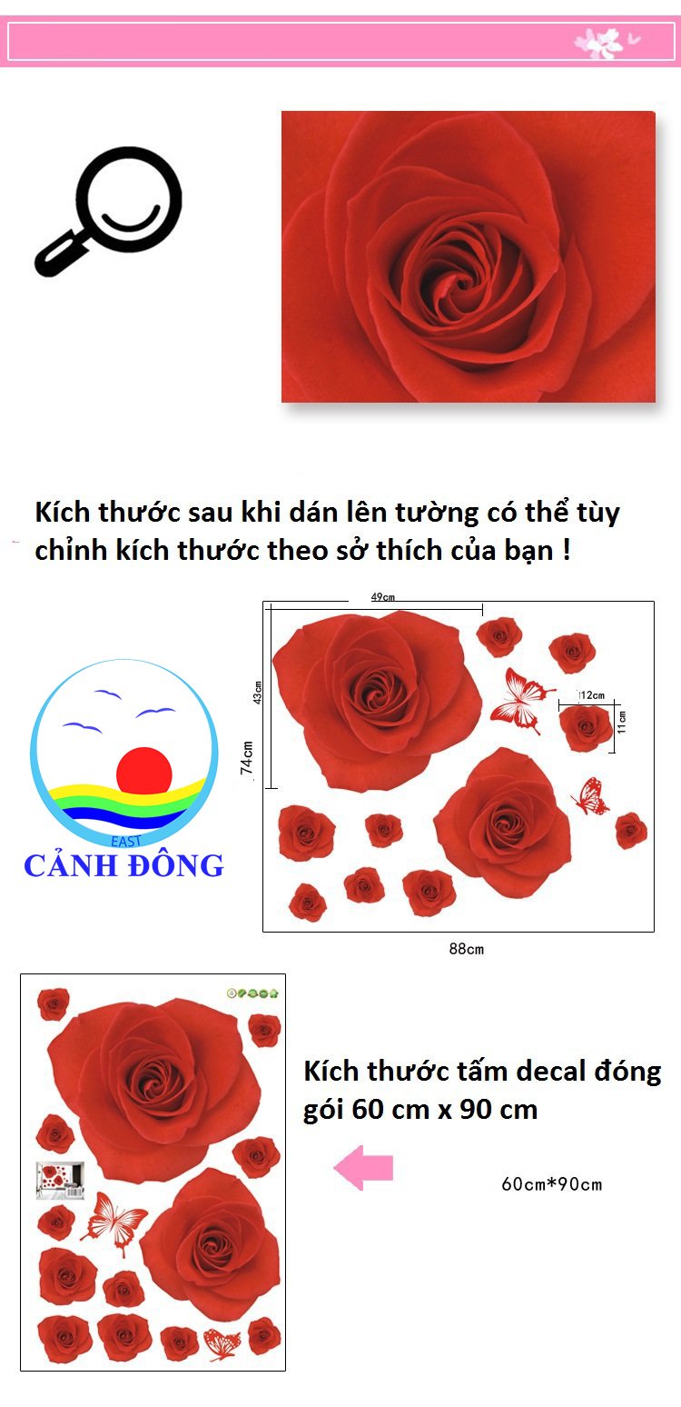 Sản phẩm bao gồm 1 x Decal dán tường hoa hồng hiện đại sang trọng