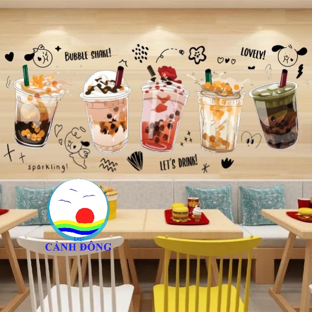 - Trà sữa đã rất thịnh hành trong giới trẻ Việt Nam, các quán trà sữa đã trang trí quán của mình trở nên bắt mắt , thu hút hơn. Nên việc đầu tư trang trí cho quán trà sữa của mình nổi bật và đẳng cấp hơn, khách hàng vừa có thể thưởng thức trà sữa, vừa có thể chụp hình lưu giữ kỷ niệm vui tại quán…. Quán sẽ càng ngày càng đông khách và bạn sẽ nổi tiếng hơn. Nên nhanh tay sở hữu ngay một tấm decal dán tường quán trà sữa về cửa hàng nhà mình bạn nhé ! Cảnh Đông rất vui khi được một phần thiết kế, tân trang , trang trí quán trà sữa của bạn trở nên xinh đẹp và sang trọng, nổi bật hơn ạ !