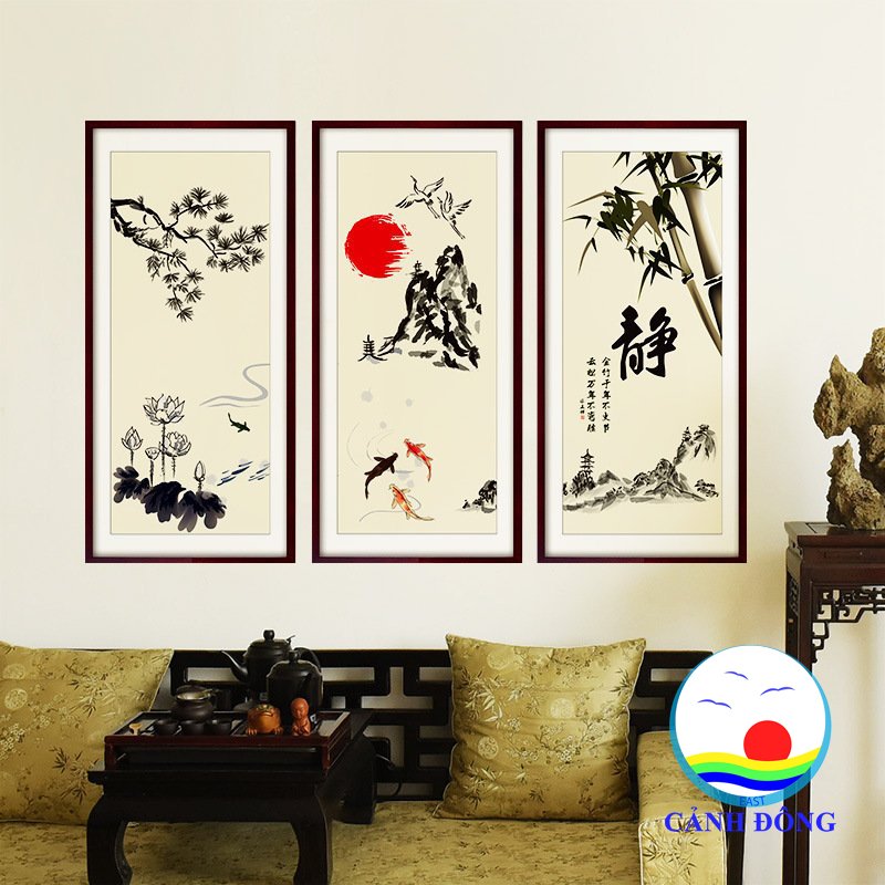Sản phẩm gồm 1 x decal dán tường tranh phong cảnh thư pháp