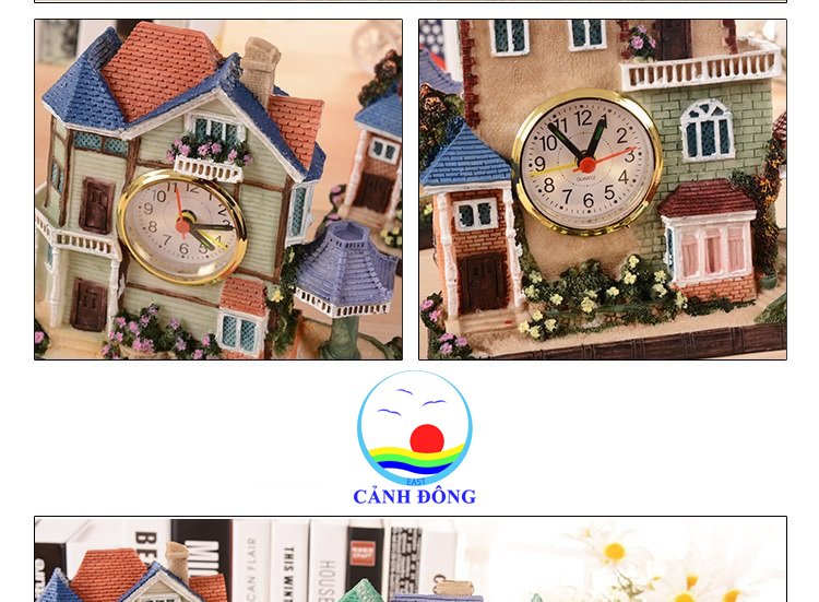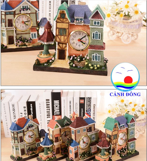 - Thế giới màu sắc đầy sinh động xanh, đỏ, tím, vàng trong sản phẩm đồng hồ báo thức ngôi nhà mơ ước hứa hẹn sẽ làm cho không gian sống của bạn trở nên bừng sáng, độc đáo hơn. Từng chi tiết nhỏ bé như đường vân ngói, khóm hoa nhỏ trước nhà đều được chúng tôi chế tác vô cùng tỉ mỉ, như đang dựng lên ngôi nhà tuổi thơ của chính mình.