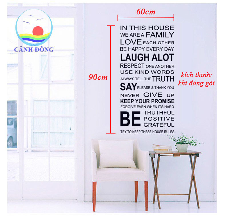 - Giấy dán tường chữ WE ARE A FAMILY hiện nay đã được sử dụng rất phổ biến để trang trí phòng khách, phòng ăn, tại các spa, phòng tập thể dục, thể thao và các showroom nội thất, văn phòng công ty. Mang điểm nhấn tạo nên khác biệt , không gian và tôn lên sự sang trọng cho căn phòng của bạn. Giấy dán tường chữ được nhiều gia đình yêu thích và lựa chọn bởi sự tinh tế, mới lạ và độc đáo cho không gian xinh của bạn