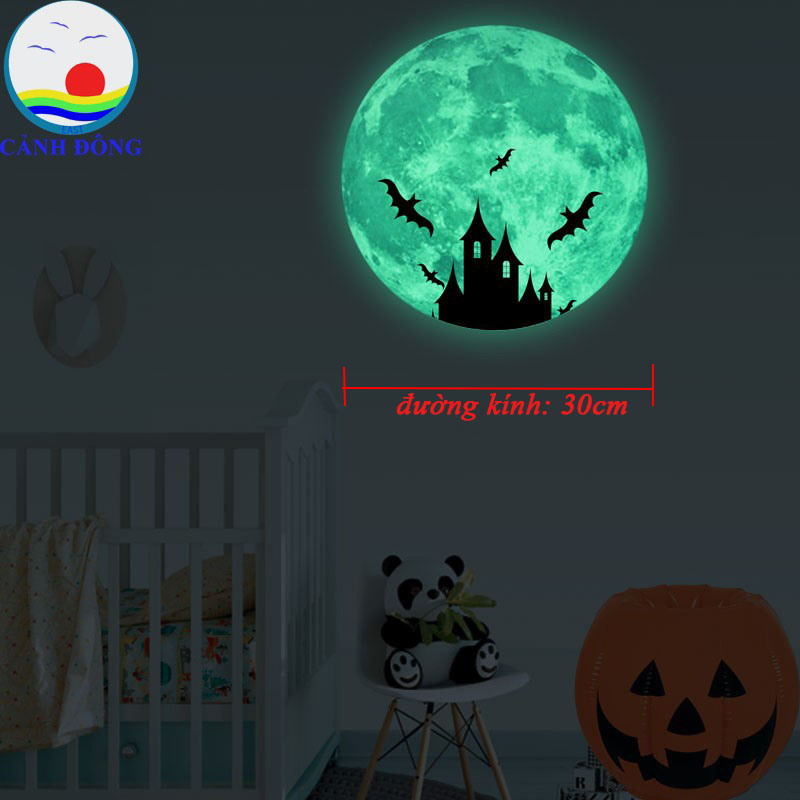 - Giấy dán tường mặt trăng phát sáng chỉ gồm mặt trăng và các họa tiết bên trong như máy bay, chim, cây... do bạn tự thiết kế nhé.