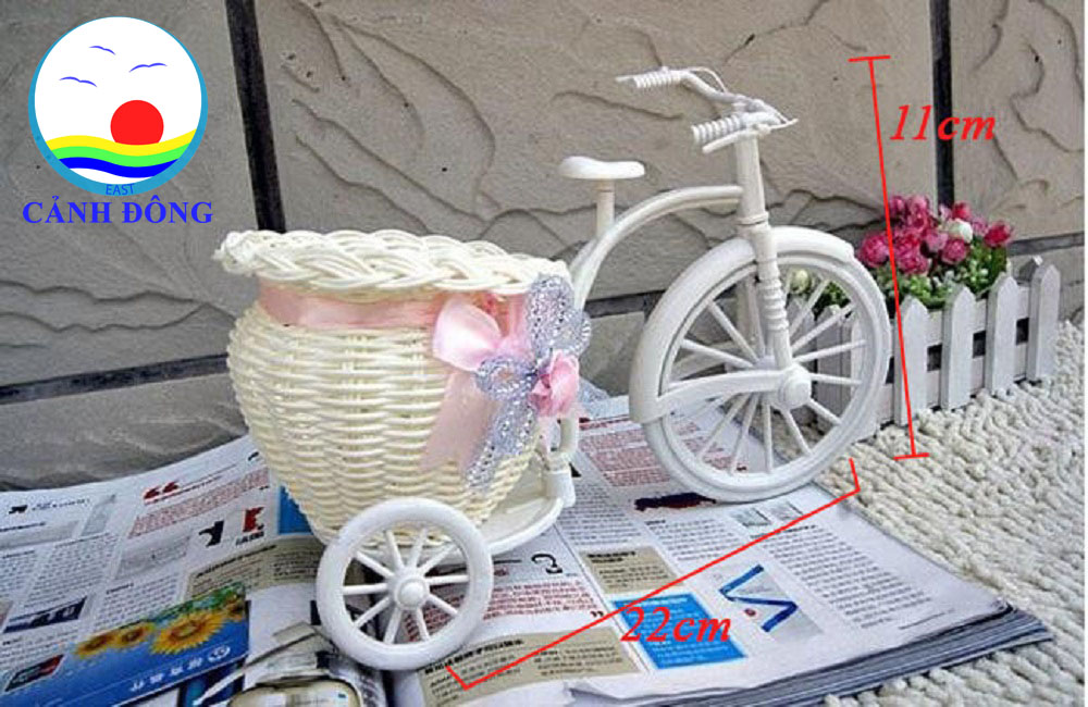 - Giỏ hoa xe đạp trang trí được thiết kế nhỏ gọn với xe đạp có chiều dài 22 cm, mẫu mã mới lạ, màu sắc hài hòa làm nổi bật góc nhỏ trong không gian ngôi nhà của bạn. Đặc biệt bánh xe có thể di chuyển được, tạo cảm giác sống động, khác với một chiếc giỏ hoa trang trí thông thường.