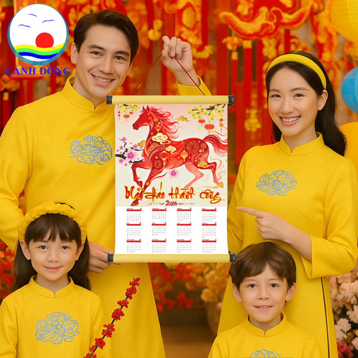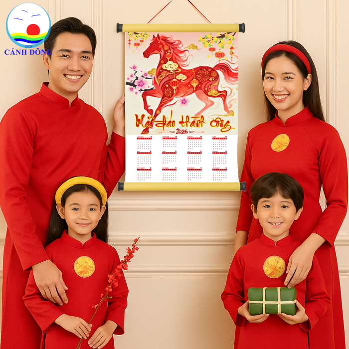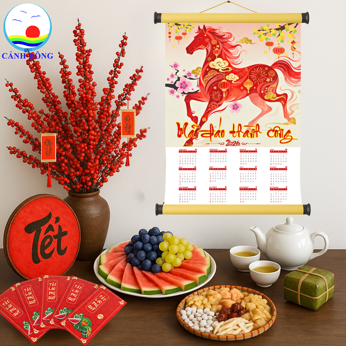 Lịch treo tường 2026, lịch Tết Bính Ngọ, lịch ngày âm dương, quà tặng Tết, phụ kiện trang trí Tết, lịch in theo yêu cầu, lịch Cảnh Đông, lịch Mã Đáo Thành Công. Lịch 2026