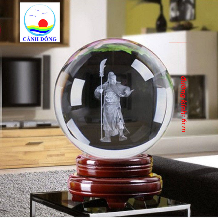 Sản bao phẩm gồm: 1 x Quả cầu pha lê khắc Quan Công chống đao 3D + 1 x đế pha lê
