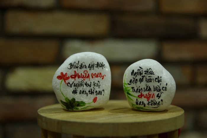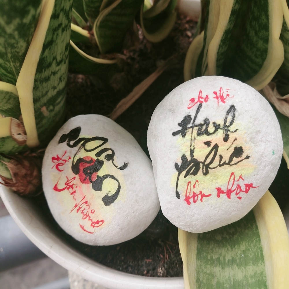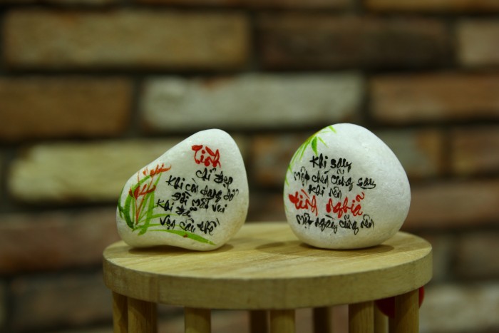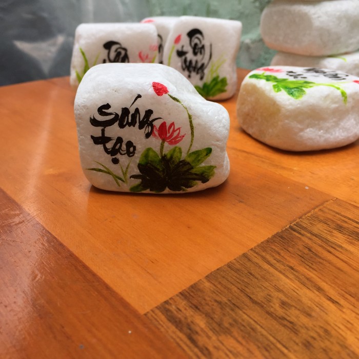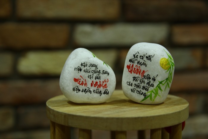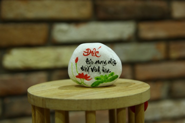 Đá là một chất liệu đặc biệt, mang trong mình tính năng độc đáo và bền vững. Với sự kết hợp giữa đá tự nhiên và nghệ thuật viết chữ và vẽ hình tay thủ công, chúng tôi tạo ra những tác phẩm độc đáo, tinh tế và mang tính nghệ thuật cao.