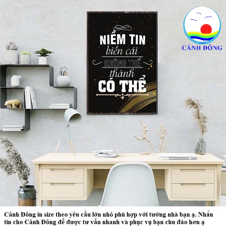 - Không chỉ là giấy dán tường trang trí nội thất bình thường mà đặc biệt hơn Tranh động lực Niềm tin biến cái không thể thành có thể tạo năng lượng tích cực cho cuộc sống còn là những câu nói truyền động lực cho cá nhân bạn, cả gia đình bạn hay một tập thể trong công ty.
