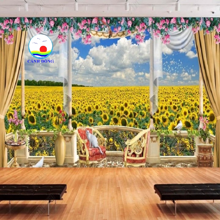 - Vì thế khi sử dụng Tranh phong cảnh decal cánh đồng hoa hướng dương ban công mở rộng phòng sang trọng dán tường, kính, gỗ không những mang đến nét đẹp tươi mới cho những bức tường, xóa đi sự đơn điệu nhàm tẻ của những khối bê tông, mà ta còn vừa được du lịch qua khung cảnh yên bình tuyệt đẹp của cánh đồng Hướng dương, như được rời xa thành phố nhộn nhịp tấp nập, thả mình vào kì nghỉ không nghĩ suy phiền muộn.