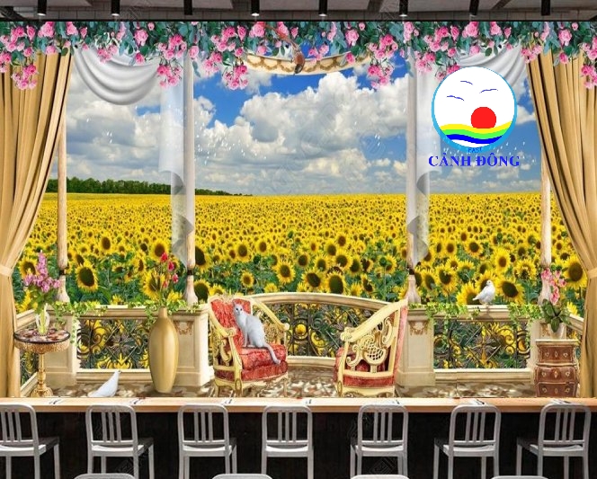 TRANH PHONG CẢNH DECAL CÁNH ĐỒNG HOA HƯỚNG DƯƠNG BAN CÔNG MỞ RỘNG PHÒNG SANG TRỌNG DÁN TƯỜNG, KÍNH, GỖ - IN THEO SIZE YÊU CẦU TRÊN NHIỀU CHẤT LIỆU - SẴN KEO DÁN DỄ.