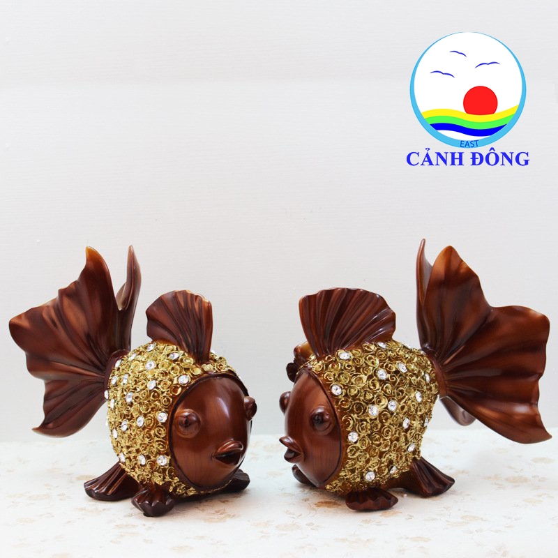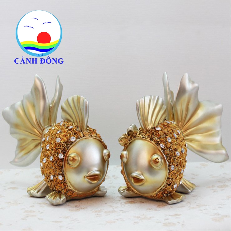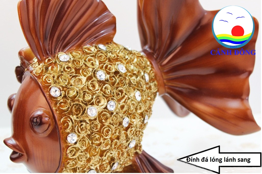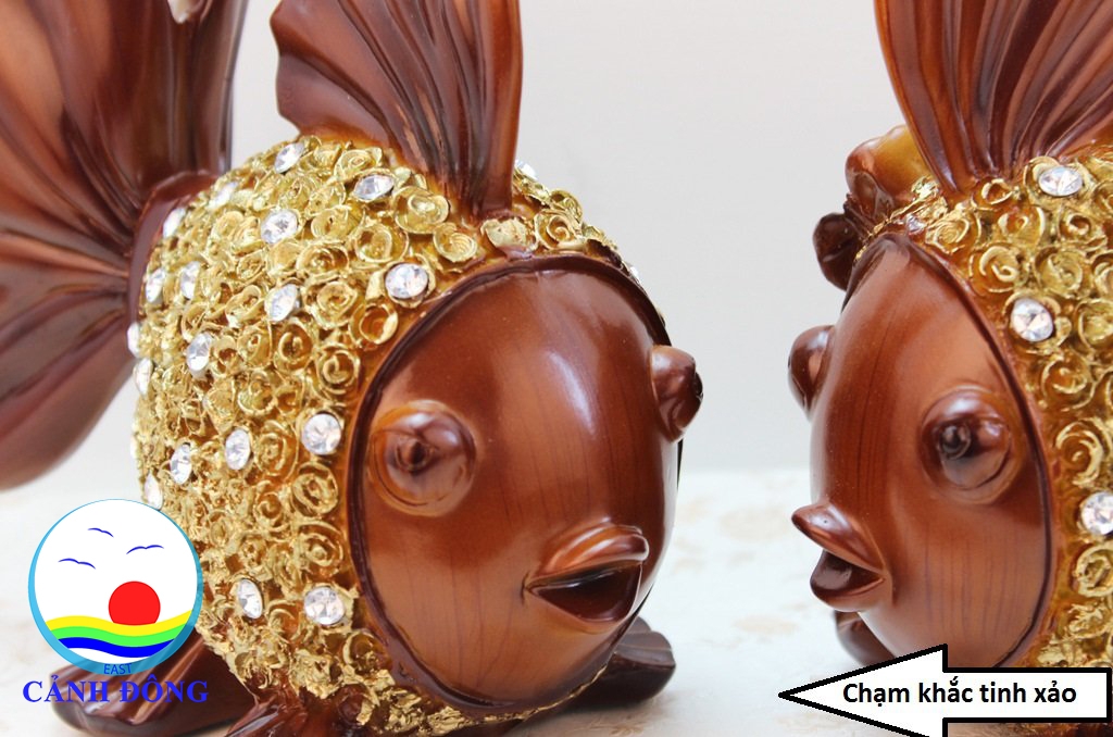TƯỢNG CÁ CHÉP VÀNG ĐÍNH ĐÁ VẢY HOA HỒNG TINH TẾ