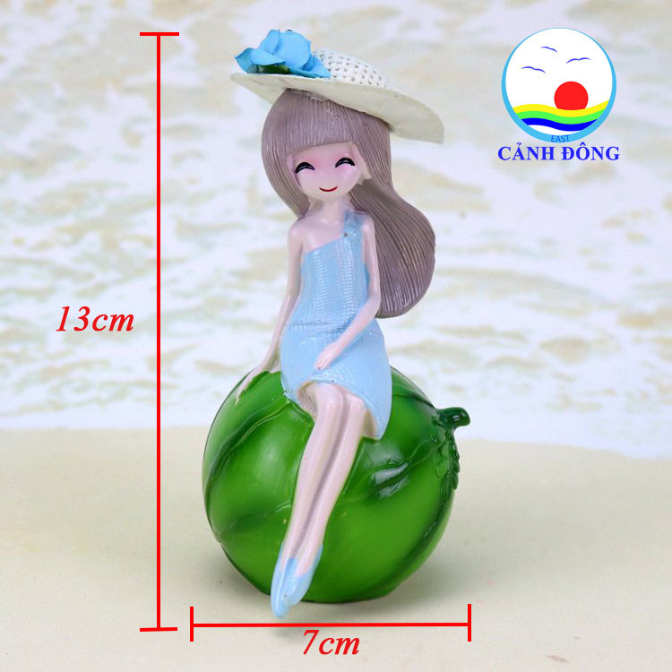 - Bên cạnh đó, Tượng cô gái dễ thương ngồi trên trái cây mùa hè được thiết kế tinh tế đến từng chi tiết cho thấy các nhà chế tác đã tỉ mỉ rất nhiều để cho ra một bộ sản phẩm xinh xắn như vậy. Với chiều cao vừa phải 13cm cùng chất liệu Polime tổng hợp cao cấp, sản phẩm phù hợp khi được dùng để trang trí nội thất cho căn nhà của bạn, cũng như an toàn tuyệt đối với sức khỏe người dùng.