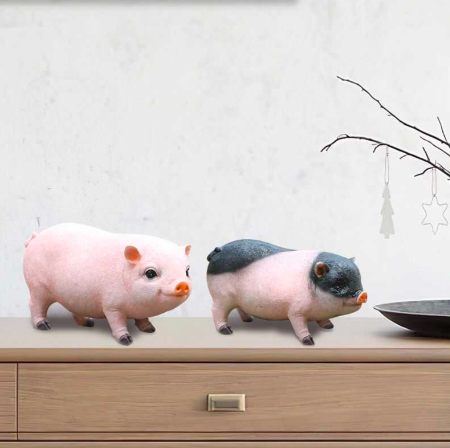 - Tượng heo trang trí được thiết kế với hình ảnh những con heo mọi nhỏ nhắn, dễ thương. Dưới bàn tay tài hoa của nhà chế tác, bé heo đã trở nên vô cùng sinh động, giống y như một bé heo thật.